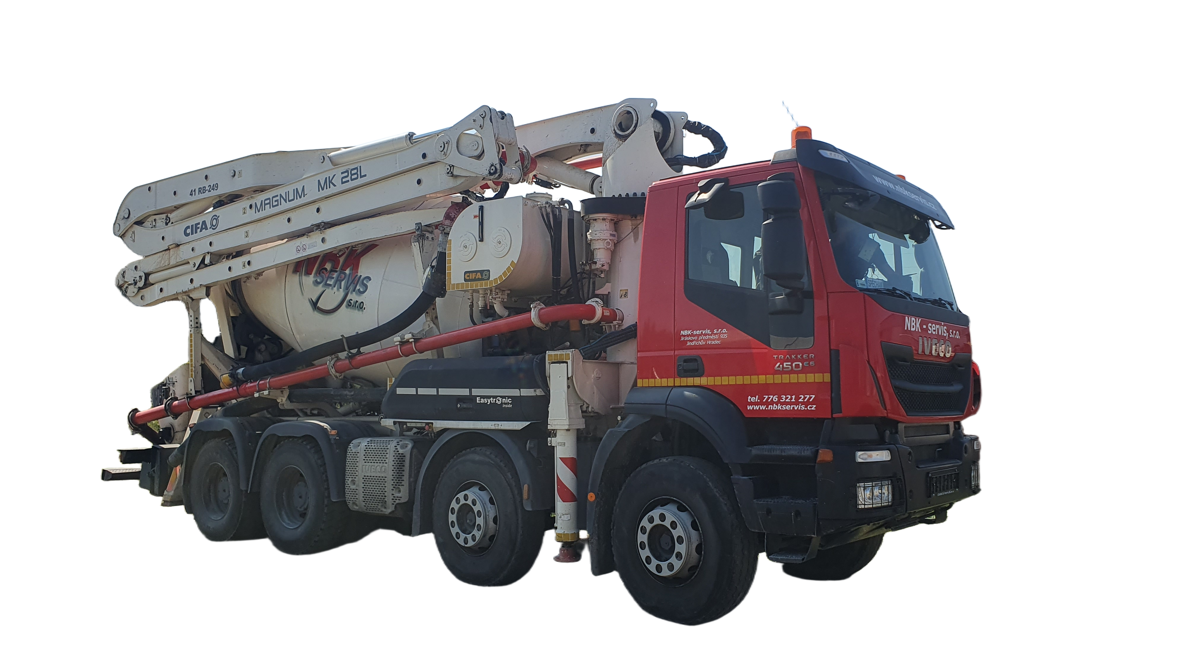 Pumpomixem PUMI – CIFA MK 28 L, s dosahem čerpání až 28m a velikostí mixu 8m3, jehož výhodou je možnost dopravy betonu na stavbu.